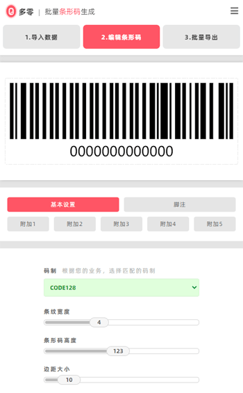 在操作上,移动版与PC版操作几乎一致,同样是三个主要步骤:【导入数据】、【编辑条形码】、【批量导出】。