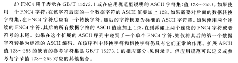 意思是,Code128的字符范围在ASCII范围内,即序号为0~127的字符,如果需要将序号是128~255的字符写入到条形码中,就需要使用FNC4功能符。