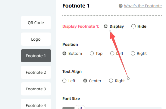 In the [Edit QR Codes] module: Check the [Show Footnotes] option—this will enable the display of footnotes on the QR code.