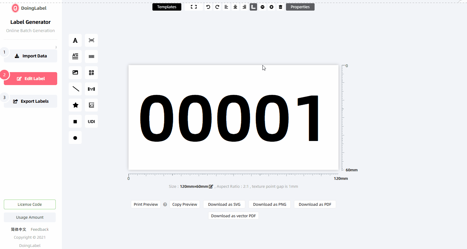 - Print or export multiple copies of the same label ("one label, multiple copies");
