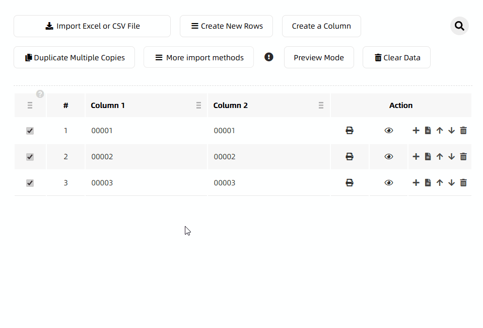 If you want to print or export labels in duplicate multiple copies, you can use the [Duplicate Multiple Copies] function under [Import Data] to duplicate each row of data. Then, use the print/export function in [Export Labels] to achieve repeated printing or export.