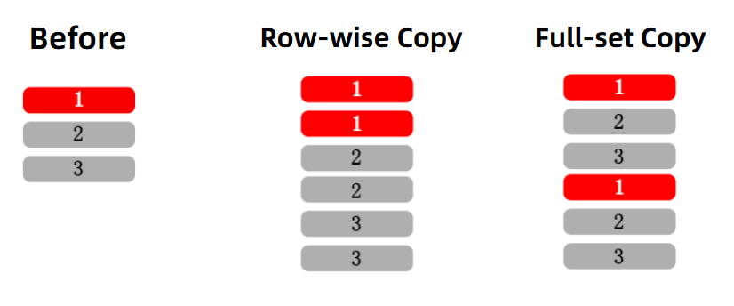 - Full-set Copy: Append all duplicated rows at the end of the original data list.