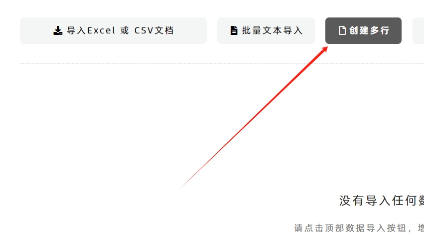 原创 未经同意,请勿转载路径:批量二维码生成 - 《如何批量文本导入数据》在【导入数据】中的顶部位置,点击【创建多行】,在弹出框中填写行数,同时填写二维码的初始文本内容(此项可以不填写),程序即可生成多行二维码数据。