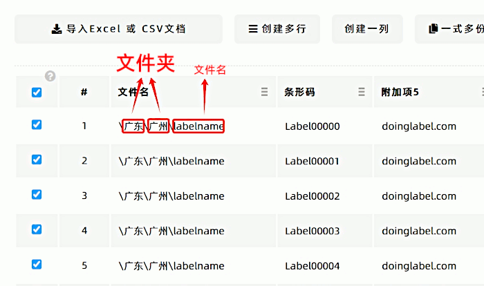 如果需要为导出的标签文件分级分文件夹保存,可以在文件名中添加“\”符号分级文件夹(不建议使用“/”符号分级)。