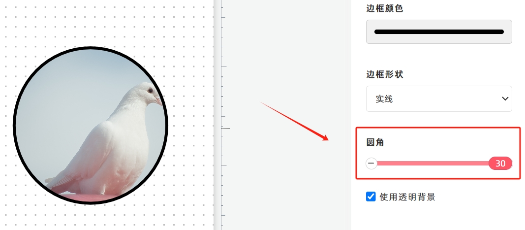 将【圆角】选项调节至最大值,图片即显示为圆形。如果图片的宽高不相等,则会显示为对应的椭圆形。