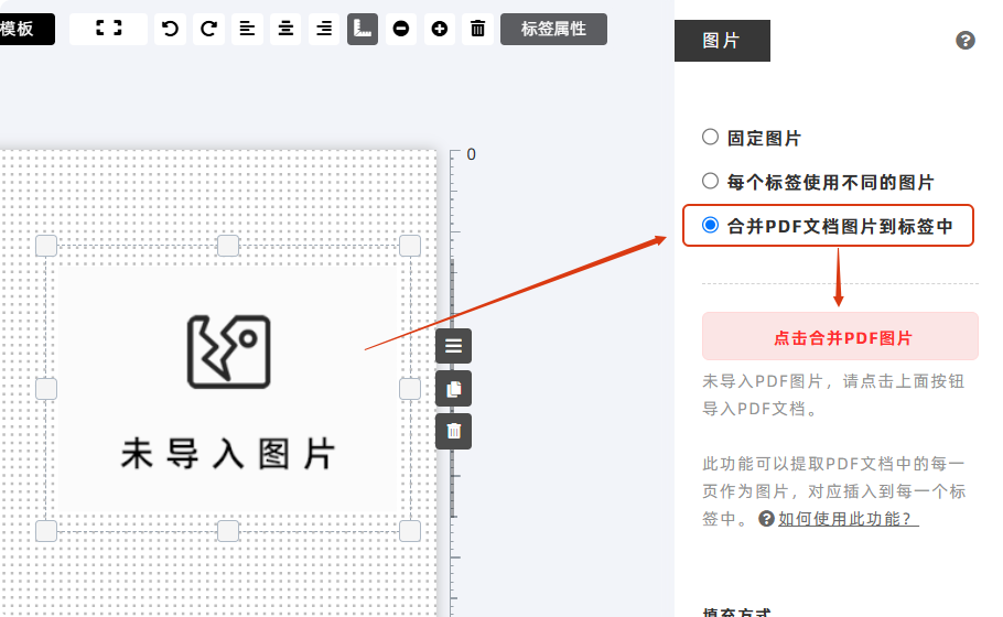 如果希望将PDF文档中的每一页,作为图片插入到标签中,可勾选【合并PDF文档图片到标签中】选项,如下图所示。