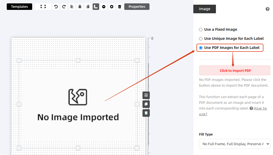 If you want to insert each page of a PDF document into labels as images, you can check the [Use PDF Images for Each Label] option, as shown in the figure below.